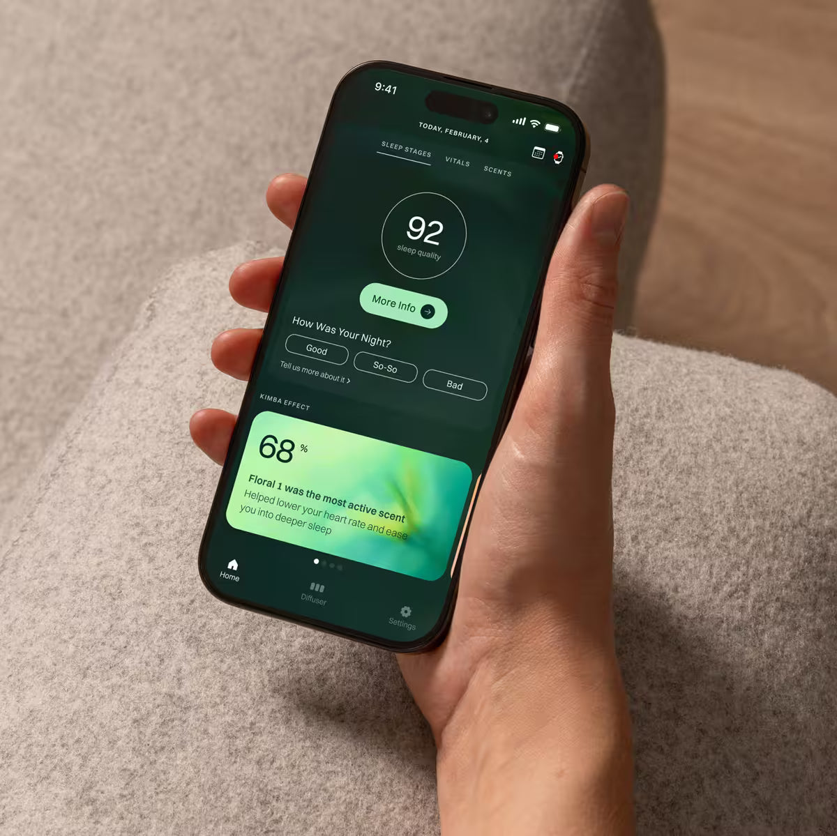Experience how scent, science, and real-time support can change the way you sleep. Discover what Kimba can do for your nights.