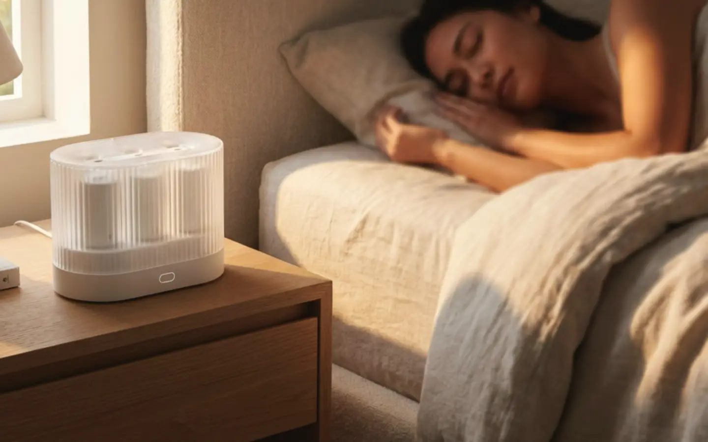 Its built-in AI monitors your heart rate, breathing patterns, and sleep stage shifts throughout the night, and when it detects that your body is drifting out of deeper sleep, it responds with a precisely timed pulse of natural scent.